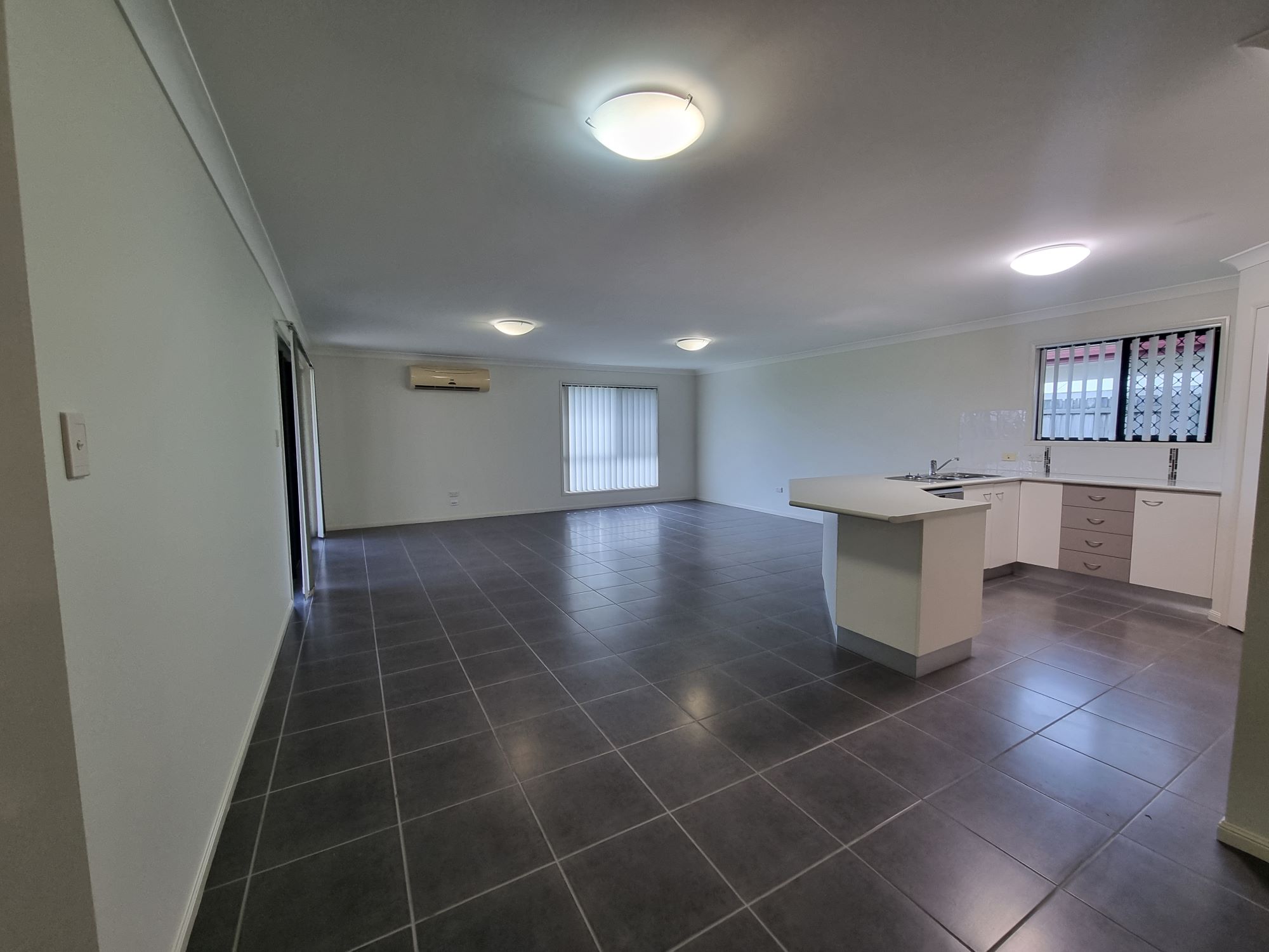 Large open plan living area with air conditioning