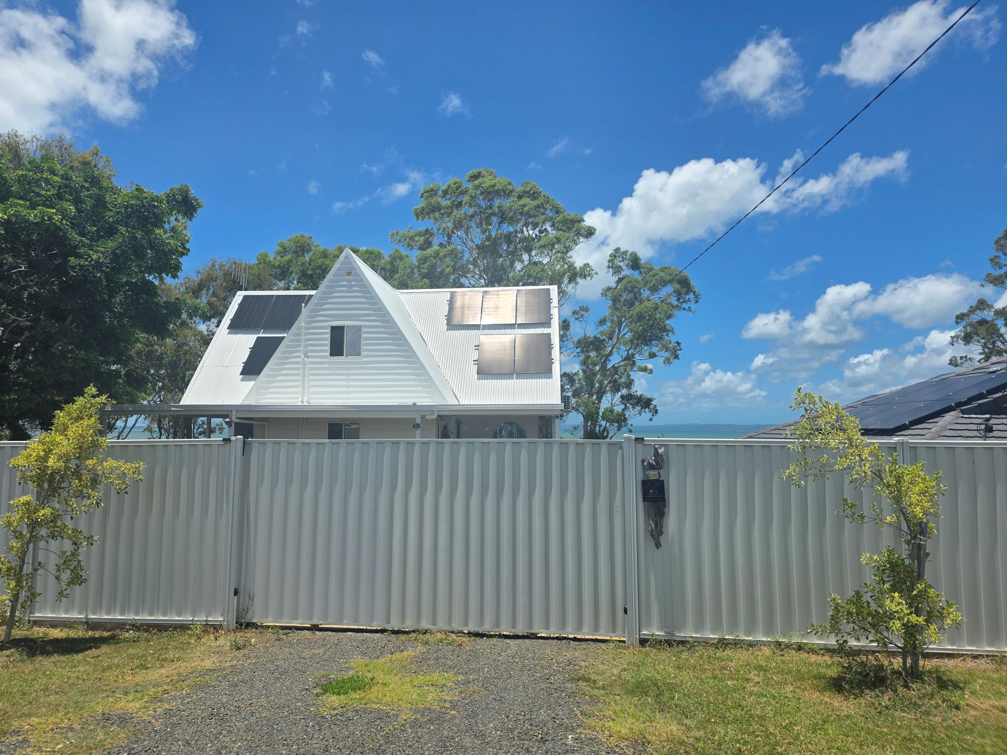 Large colourbond fence and double gate along the front